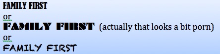This is in the ‘why bother’ category. Surely ‘Family First’ could have at least gone for some interesting font, like this: